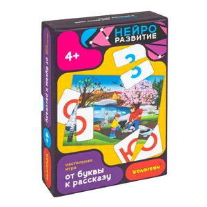 Развивайте воображение ребёнка с игрой ОТ БУКВЫ К РАССКАЗУ 3в1 серии НейроРазвитие. Игра закрепляет зрительные образы букв и предупреждает ошибки в их написании, формирует целостное представление о временах года, развивает речевые навыки и логическое мышление. Игроки работают с графическими образами печатных букв русского алфавита, составляют рассказы и отгадывают слова. Настольная игра развивает психические и когнитивные функции: создает связи между зрительным восприятием и памятью, развивает ассоциативное и логическое мышление и создает новые нейронные связи.