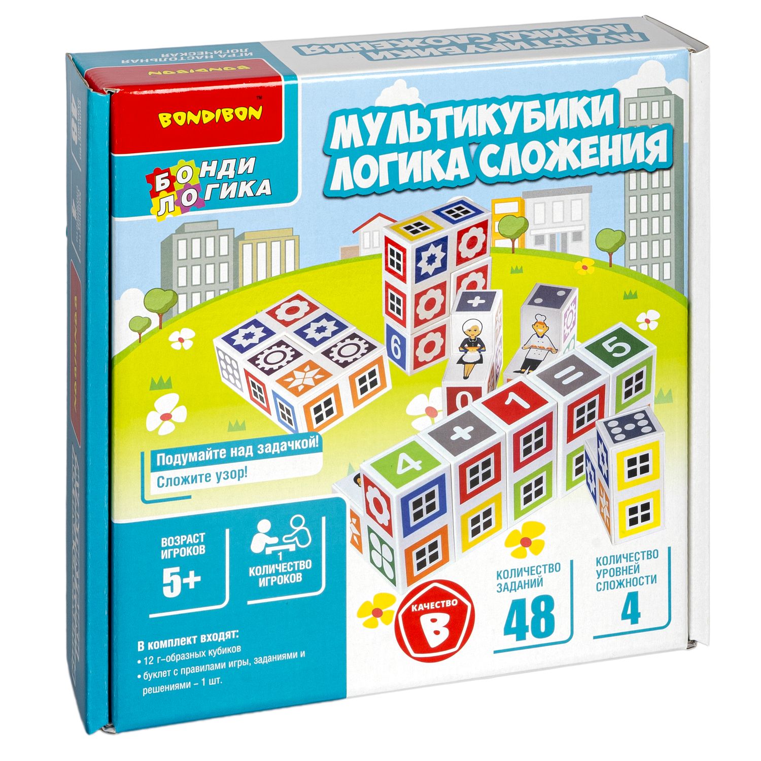 МУЛЬТИКУБИКИ ЛОГИКА СЛОЖЕНИЯ – головоломка серии БондиЛогика развивает логическое и образное мышление, цветовосприятие и моторные навыки, поможет ребенку раскрыть его творческий потенциал, научит работать со схемами, планировать свои действия и проводить проверку результатов. Помимо предложенных, игроки могут придумывать собственные варианты узоров.