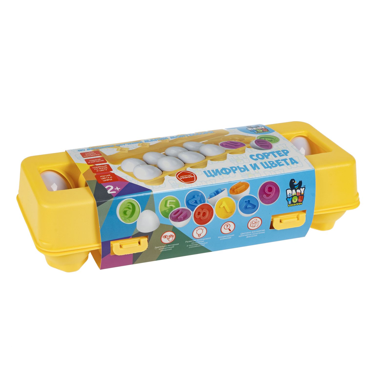 СОРТЕР ЯЙЦА ЦИФРЫ И ЦВЕТА серии Baby you предназначена для детей раннего возраста. Правильно совмести половинки, чтобы собрать яйца. Задача ребенка - подобрать одинаковые по цвету части и соединить их. Детали также можно использовать для решения примеров на сложение и вычитание. Сортер помогает выучить основные цвета, счет от 1 до 12, развивает мелкую моторику, внимание, цветовое восприятие, фантазию, логику и интерес к математике. Половинки можно использовать как штампы при играх с кинетическим песком и массой для лепки.