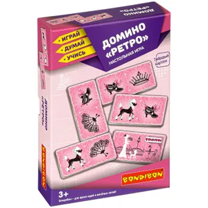 Настольная игра ДОМИНО РЕТРО серии Играй Думай Учись – более красочный и броский вариант любимой всеми игры. Суть не изменилась, но процесс, благодаря оригинальным картинкам, становится более привлекательным. Раздайте по 4 карточки, оставшиеся положите в банк. Цель игры – избавиться от всех полученных карточек, разместив их на столе так, чтобы картинки с одного конца карточки и на одной из конечных карт в цепочке совпадали. Количество игроков 1-4