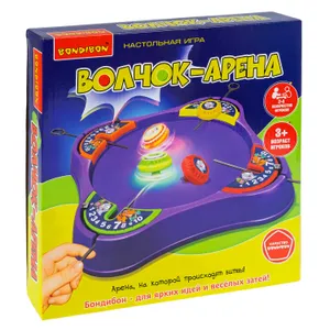 Настольная развлекательная игра ВОЛЧОК-АРЕНА – это веселое и интересное развлечение для компании. Установите счетчик очков на платформах на ноль. Вставьте пусковые прутики в прорези на арене и закрепите волчки на платформе. Одновременно дерните за прутики и выпустите волчки. Победителем раунда становится тот, чей волчок вращается на арене дольше остальных. Количество игроков 2-4